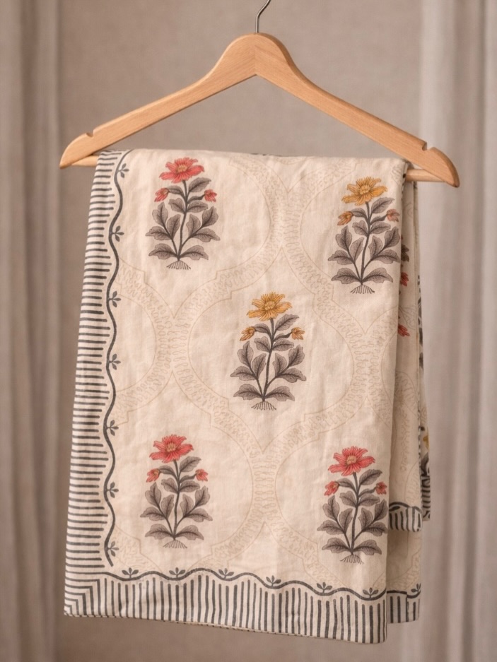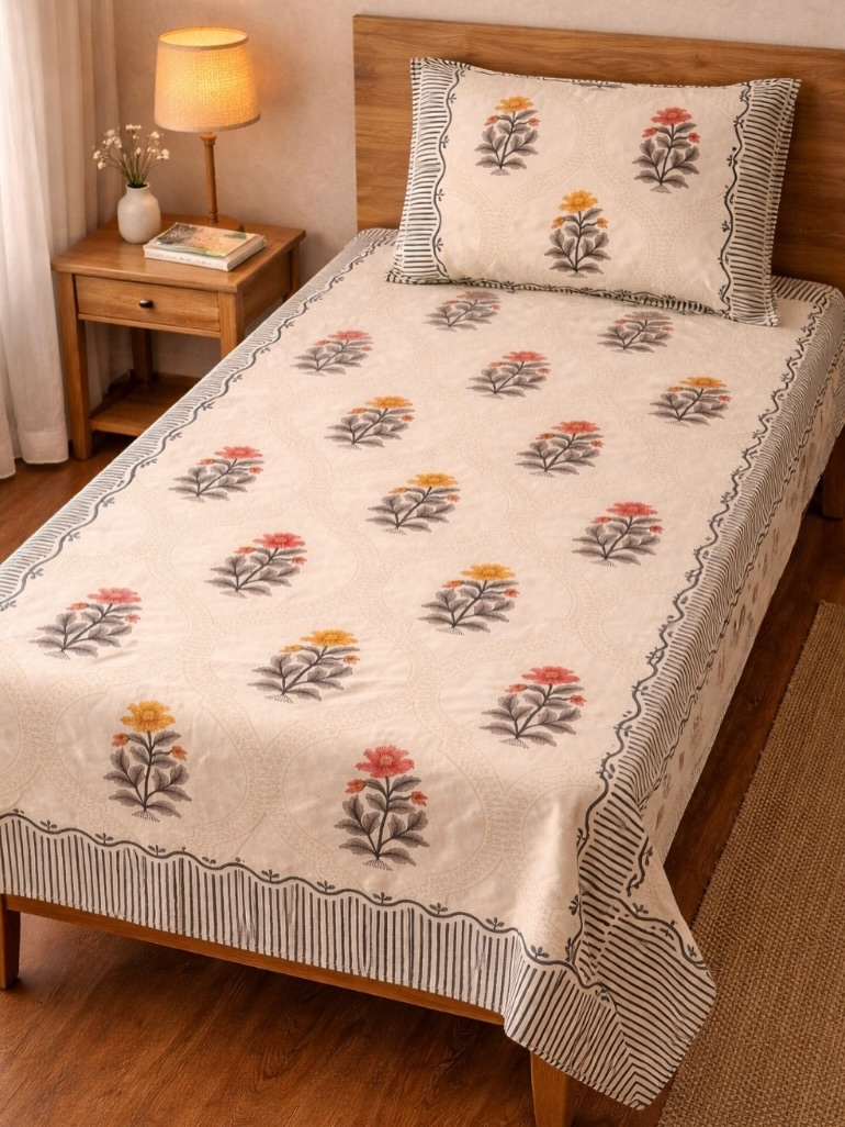 Double size elegant bed sheet with two pillowcases. Machine wash separately in cold water.